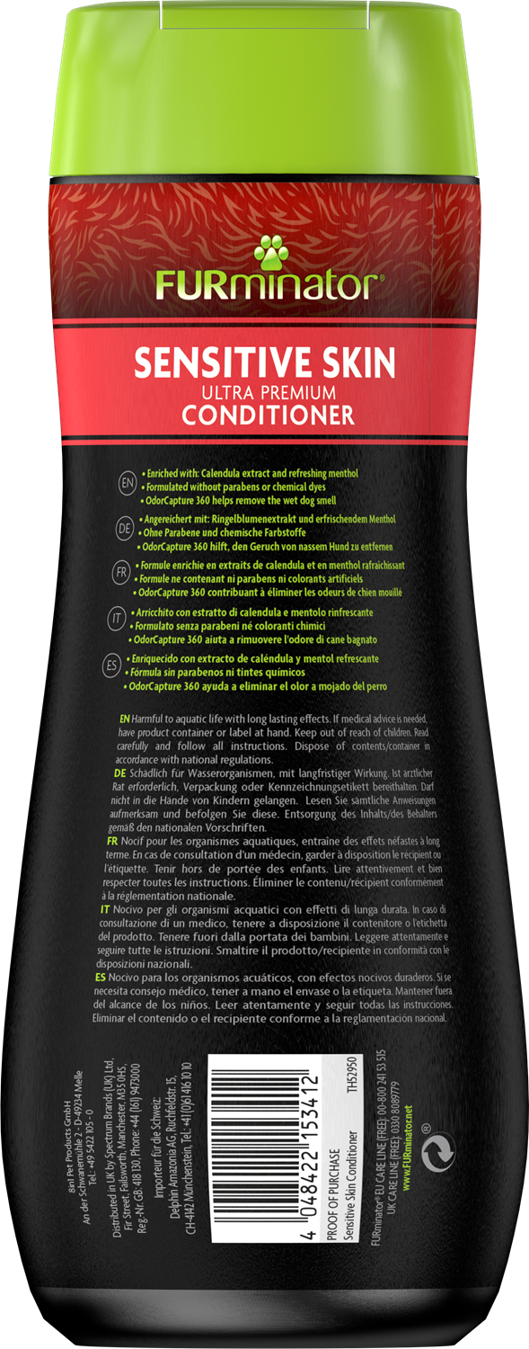 FURminator – Sensitive Skin Ultra Premium Conditioner: the gentle, cooling, and nourishing solution for dogs with dry, itchy, or sensitive skin.