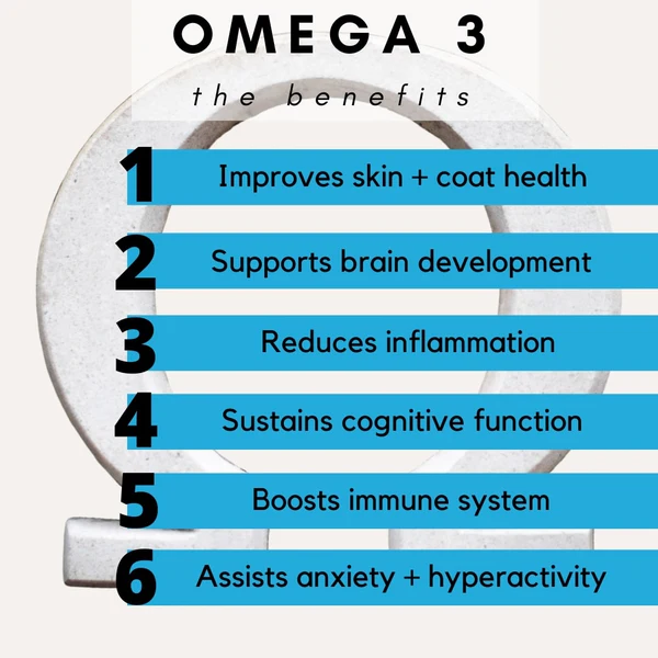 - Promotes healthy skin: Reduces dryness, itchiness, and irritation caused by environmental or food allergies.
