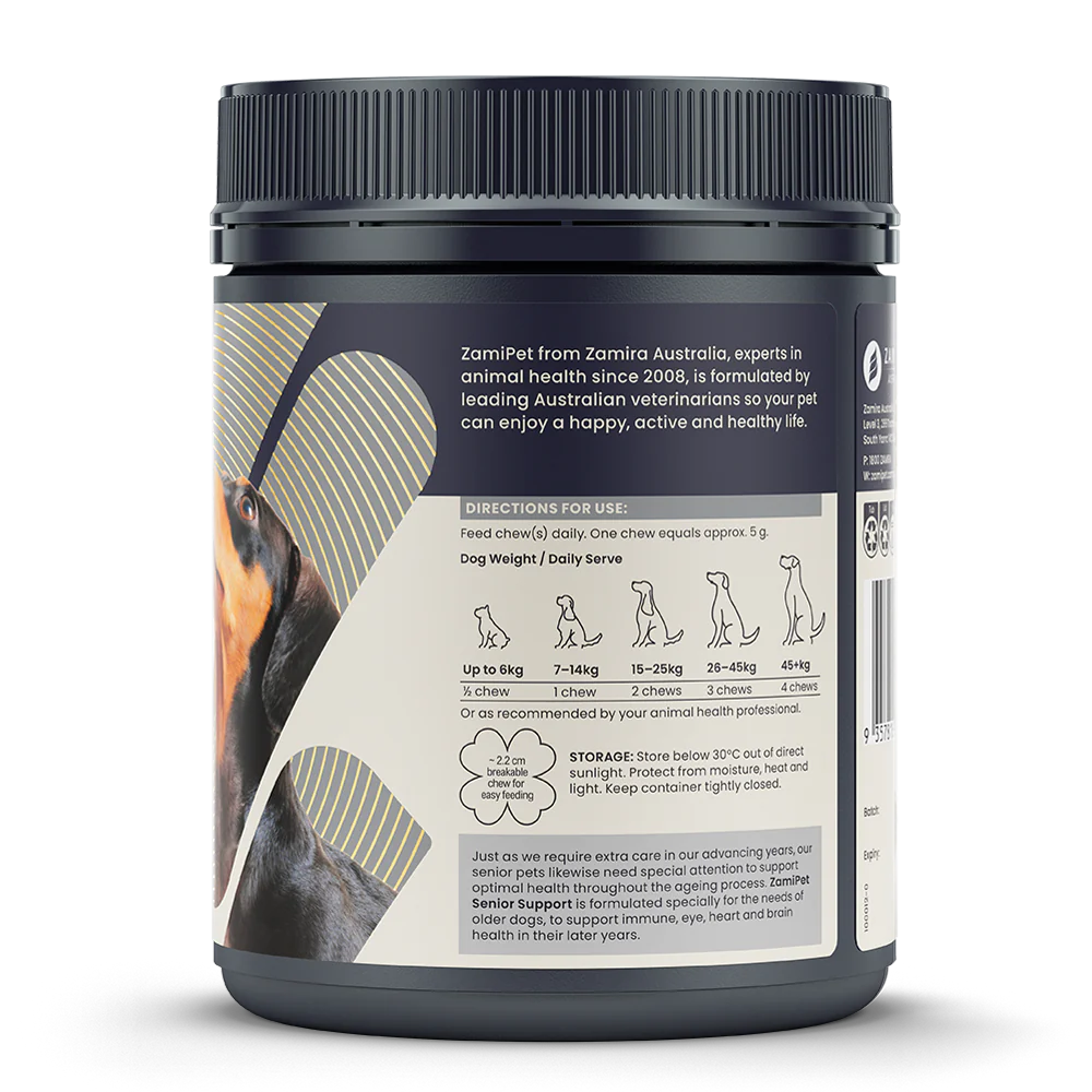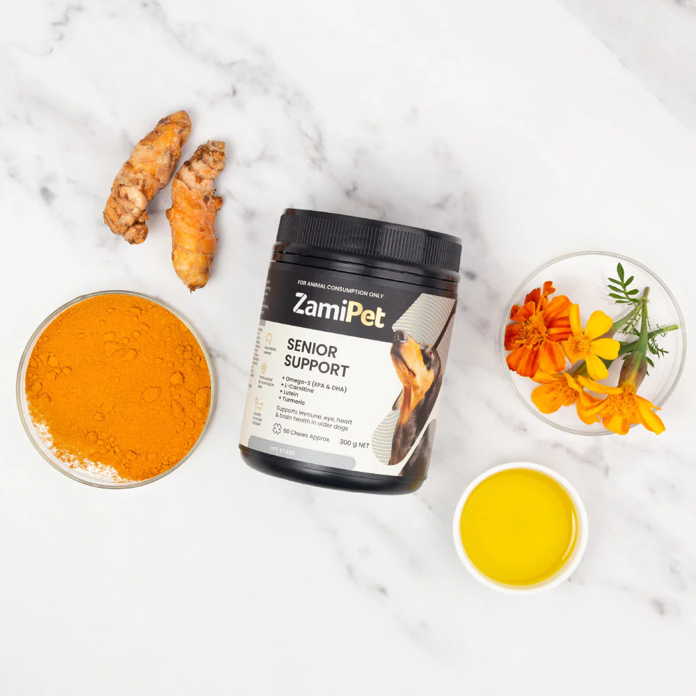 ZamiPet Senior Support is formulated with a unique combination of ingredients known for their role in supporting ageing dogs.
