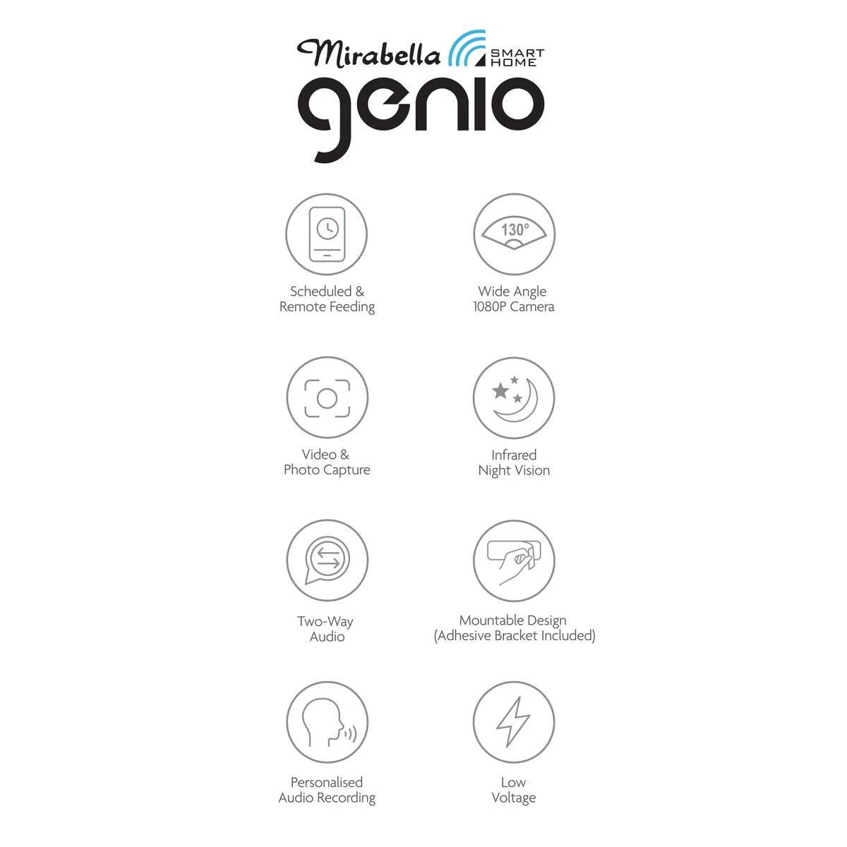 - Dual band Wi-Fi (2.4 GHz & 5 GHz) – supports both Wi-Fi bands for flexible connectivity via the Mirabella Genio app