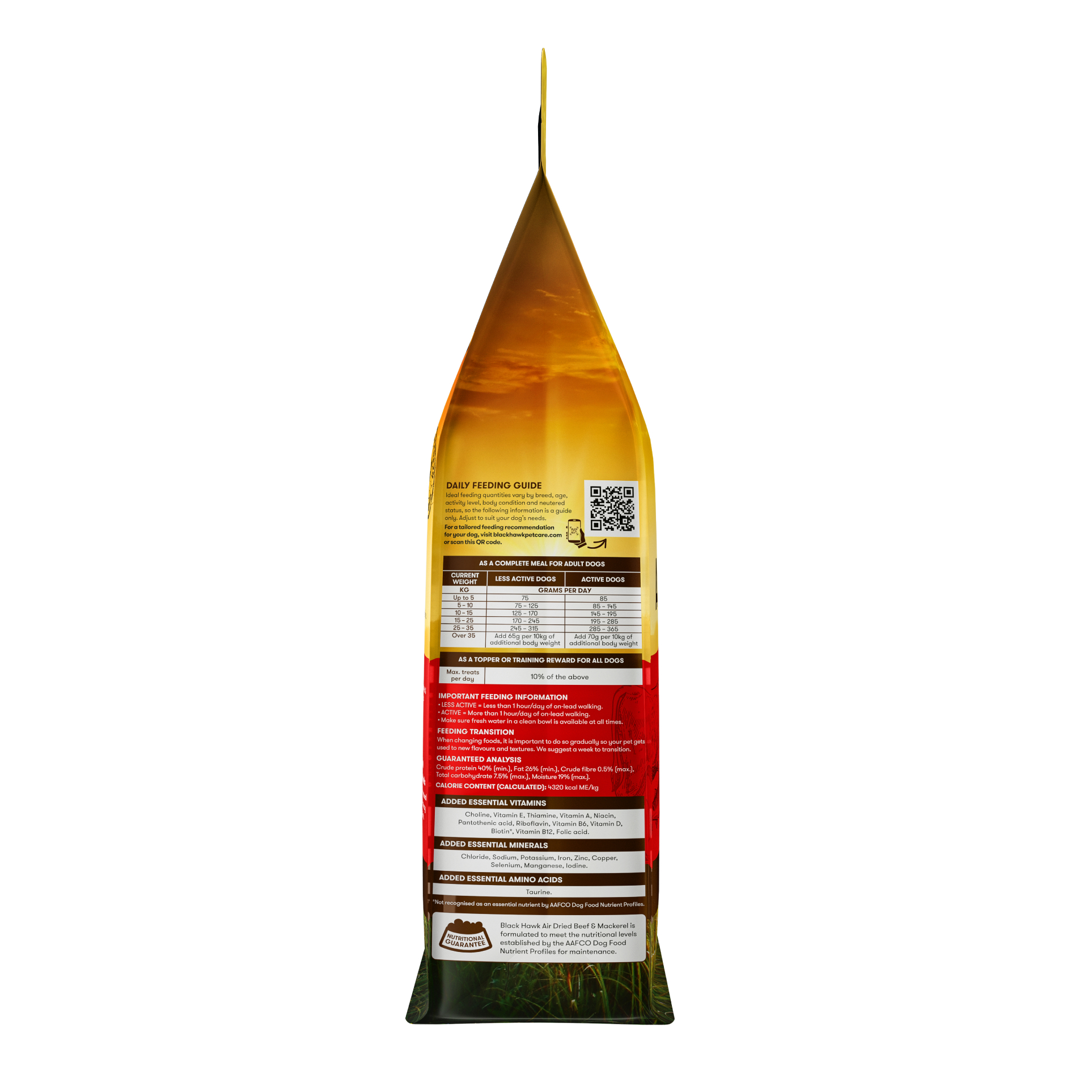 Always introduce new foods gradually over 7–10 days to avoid digestive upset. Store the product in a cool, dry place and seal the pack after use. Feeding guidelines may vary depending on your dog’s activity level, breed, and health status.