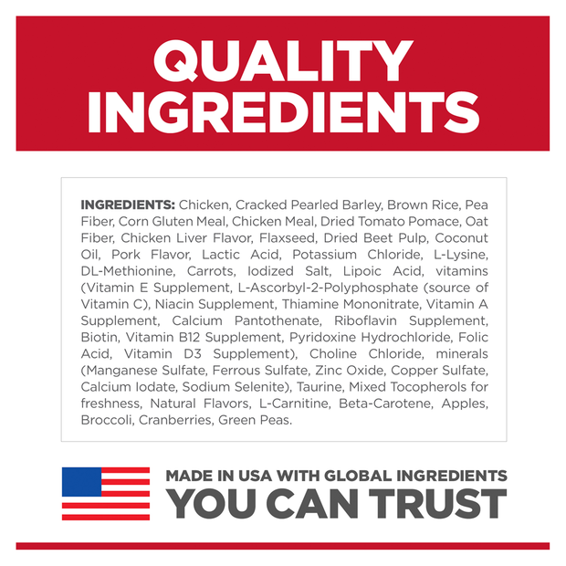 - Natural ingredients: With added vitamins, minerals and amino acids—backed by Hill’s nutrition science.