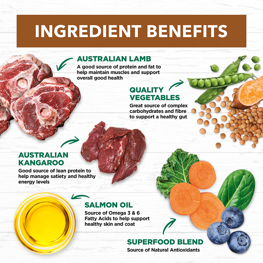 - Australian meat first: Real lamb and kangaroo for premium protein and natural nutrition.