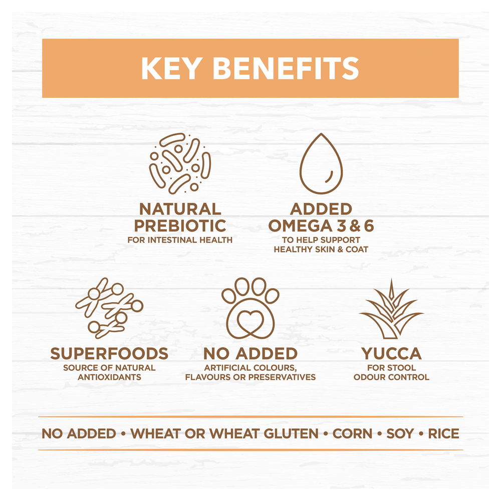 - Grain free & gentle: Vegetables and legumes provide complex carbs and fibre for a healthy gut.