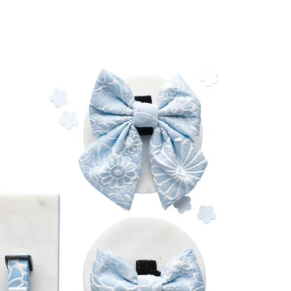 Cocopup London Baby Blue Floral Velvet Bow Tie – Elegant & Stylish Pet Accessory